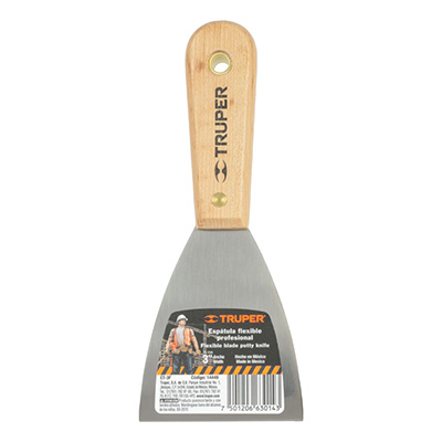Espátula de 3 pulgadas Truper, cuenta con hoja fabricada en acero al alto carbono, desbastada y templada para máxima flexibilidad, su mango de hickory americano brinda una alta resistencia al impacto y durabilidad.